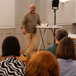 Herbert Russo lebt im Freiamt und führt ein Geschäft für italienische Spezialitäten. Er ist verheiratet und stolzer Vater zweier Töchter. Seit acht Jahren führt er ein ruhiges, geregeltes Leben und wenn es nach ihm ginge, könnte dieses Leben auch so weitergehen. Doch die La Familia vergisst nicht: Russo entstammt einem süditalienischen Mafiaclan und hat vier Menschen auf dem Gewissen. Die kleibürgerliche Idylle im aargauischen Muri ist ein sehr gut getarntes Versteck. Sunil Manns Roman «Der Kalmar» setzt in dem Augenblick ein, als Russo von seinem alten Leben eingeholt wird: Wieder erhält er den Auftrag, jemanden aus dem Weg zu räumen. Und er weiss, er kann nicht nein sagen. – Mit kräftiger Stimme und viel Charme trug Sunil Mann den Anfang seines zehnten Kriminalromans vor. Russo passiert auf dem Weg zu seinem Opfer ein Missgeschick nach dem andern, so dass der Auftragskiller dem gebannt zuhörenden Publikum fast leidtat. Die witzigen und gut dosierten Zwischenkommentare des Autors sorgten dazwischen für manchen Lacher.